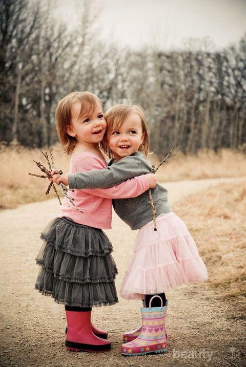 Foto: https://www.ellabellaphotos.com/blog/2009/04/two-cute-austin-twins-photographer/Kami saling menyayangi. Berpelukan!