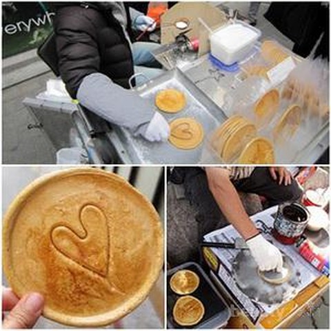 Foto: https://www.onlineshop-misscha.com/2014/09/21-jajanan-kaki-lima-khas-korea-selatan.html Yap, Gyeran Ppang adalah jajanan kaki lima yang mirip dengan egg muffins. Makanan ini adalah roti gurih yang ditengahnya berisi telur. Gyeran Ppang selalu disajikan dalam keadaan panas.https://www.onlineshop-misscha.com/2014/09/21-jajanan-kaki-lima-khas-korea-selatan.html |