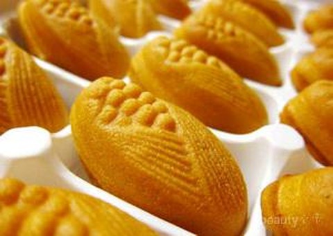 Kue ini terbuat dari tepung yang dicetak seperti biji kenari dengan isi pasta kacang.