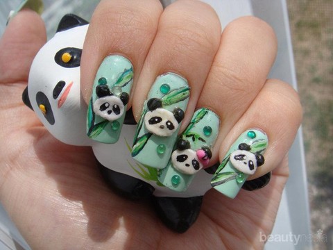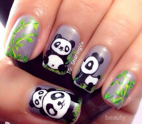 Foto: https://www.fashion-nail.net/article-nail-art-panda-prince-122741461.html22. Panda dan bambu