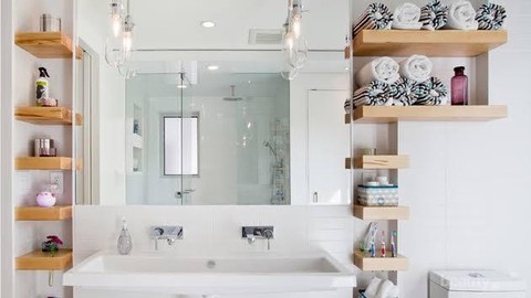 Foto: https://media.rooang.com/2016/03/inspirasi-desain-rak-kamar-mandi/Untuk desain kamar mandi minimalis modern, pilih rak penyimpanan vertikal yaitu dengan memanfaatkan ruang dinding yang ada. Ruang penyimpanan ekstra bergaya memanjang ke atas memang adalah solusi paling ideal karena efisiensinya. Pasang rak dinding atau ambalan yang cukup besar untuk menaruh segala keperluan kamu. Selain menyimpan, rak perlengkapan mandi mampu membuat kamar mandi terlihat lebih rapi.