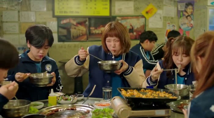 Lee Hyeri punya bakat luar biasa untuk membuat adegan makan jadi sangat menarik. Dalam Reply 1988 (2015), sebagai Sung Deok Sun, dia sering terlihat menikmati makanan bersama keluarganya dalam suasana rumah yang hangat.
