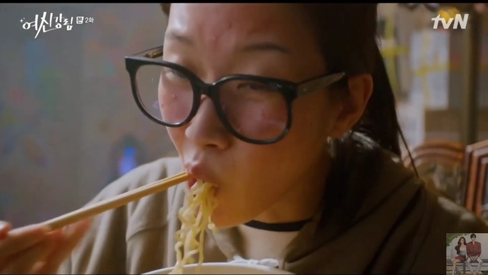 Jeon Mi-do sebagai Chae Song Hwa dalam Hospital Playlist (2020), Sebagai dokter yang sibuk, adegan makan Chae Song Hwa sering kali menjadi momen berharga di tengah padatnya aktivitas. Ketika dia akhirnya memiliki waktu untuk makan, dia tidak tanggung-tanggung dalam menikmati makanannya.