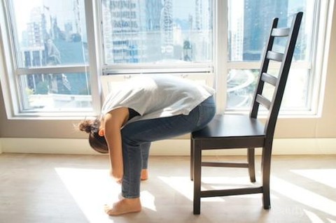 Variasi gerakan lainnya adalah dengan memanfaatkan gerakan ala yoga. Buka kedua kakimu lalu letakkan kaki diantara keduanya. Ambil nafas perlahan lalu keluarkan dari mulut. Setelah beberapa saat, bangunlah secara perlahan karena gerakan ini kemungkinan membuatmu sedikit pusing. Setelah beberapa kali melakukan gerakan ini, rasa lelahmu perlahan akan mulai hilang.
