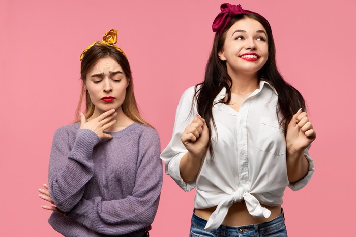 Ilustrasi orang yang satu senang yang satu cemberut/Foto: Freepik.com/karlyukav