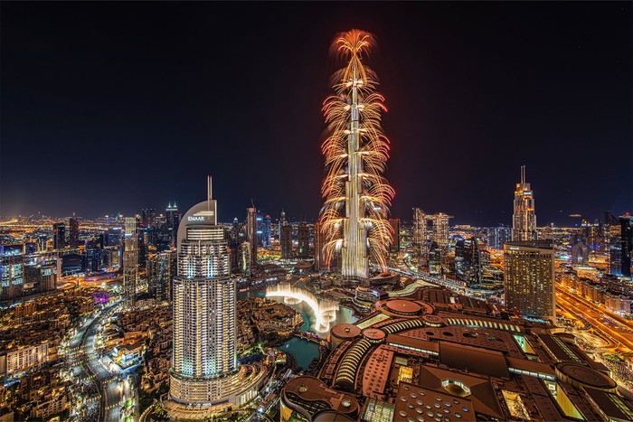 Dubai tampaknya memang tidak pernah setengah-setengah dalam melakukan sesuatu, termasuk perayaan tahun baru. Pusat atraksi utama adalah Burj Khalifa yang merupakan gedung tertinggi di dunia. Gedung ini menjadi latar pertunjukan kembang api dan lampu laser spektakuler.