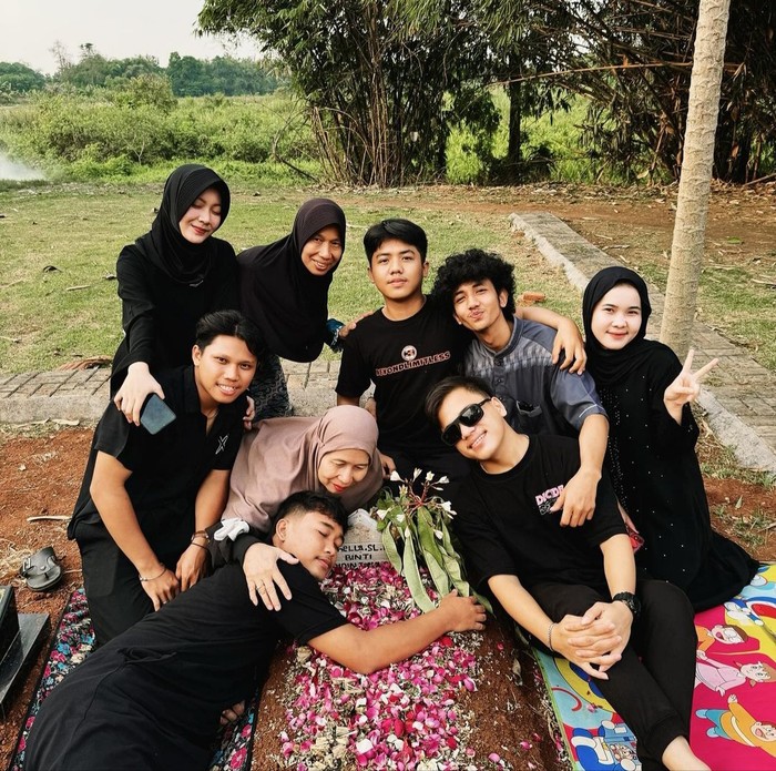 Albi Dwizky dan keluarga di pemakaman Shella Selpi Lizah/Foto: Instagram.com/albidwzky