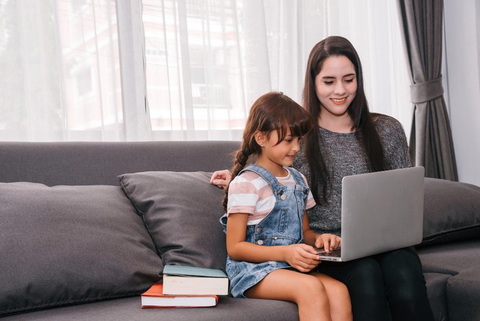 Ilustrasi mendampingi anak ketika bermain laptop/ foto: freepik/ partysock