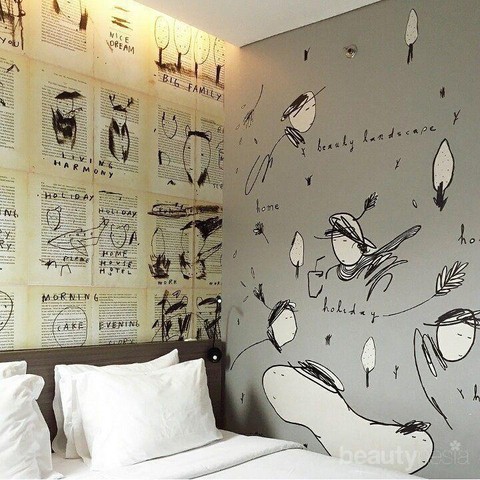 Foto: IstimewaDiantaranya adalah Ykha Amelz yakni seorang ilustrator wanita yang dikenal dengan gaya feminin, penuh warna, dan menyenangkan serta menghasilkan seni yang chic di kamar lantai dua ARTOTEL. Seniman selanjutnya adalah Zaky Arifin yang menambah kesan imajinasi “Have a wild dream” dengan menggunakan kapur dan hewan liar sebagai seni visualisasinya yang ia aplikasikan pada kamar lantai tiga ARTOTEL. Nggak kalah menarik, seniman Oky Rey Montha juga menghasilkan karya surealis dengan memadukan eleman gotik dan kartun pada kamar lantai empat.