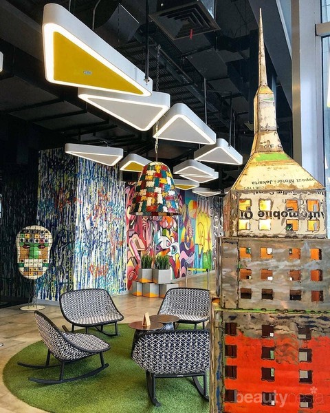 Foto: IstimewaSedangkan pada lantai lima, kamu akan dibuat takjub oleh karya seni Wisnu Auri yang menghasilkan karya konseptual dari unsur dua dimensi dan tiga dimensi, lho! Pada lantai enam juga didesain oleh seniman berbakat dan multitalenta, yakni Eddie Hara yang memiliki gaya seni kartun yang khas serta teknik visualisasi yang unik penuh warna dan sangat mengagumkan.