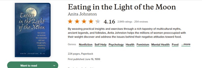 Mau baca buku tentang gangguan makan, tapi dengan gaya pembahasan yang unik? Eating in the Light of the Moon jawabannya! Anita Johnston menggabungkan psikologi, mitologi, dan seni penyembuhan untuk membantu kamu yang berjuang dengan gangguan makan.