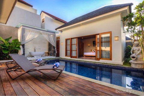 Last but not least, rekomendasi Vila murah di Bali private pool yang cocok dijadikan pilihan tempat menginap adalah Grand Kesambi Resort and Villa Seminyak. Vila yang satu ini mengusung konsep modern yang eksklusif. Fasilitas private pool yang ditawarkan semakin membuat nyaman untuk kamu tinggal di sini selama berada di Bali. Selain itu ada fasilitas lain berupa restoran dan spa yang bisa kamu manfaatkan saat menginap.