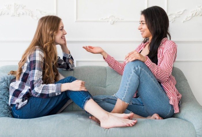 Dua perempuan sedang bercerita