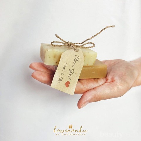 Foto: https://www.instagram.com/kawinanku/Sabun batangan berbahan organik adalah sovenir unik yang bisa kamu pilih. Selain aromanya yang mengundang senyum setiap orang yang menerimanya, sabun batangan juga pasti bermanfaat karena setiap orang membutuhkan sabun untuk membersihkan tubuh, ya kan?