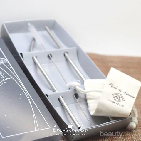 Perlengkapan makan banyak dipilih pasangan menikah untuk dijadikan souvenir di hari pernikahan. Perlengkapan ini biasanya berupa garpu, sendok maupun sedotan dari bahan stainless atau bambu. Selain unik, souvenir ini bermanfaat untuk mengurangi sedotan atau perlengkapan makan berbahan plastik lainnya.