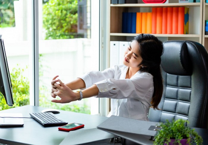 Melakukan peregangan kecil saat bekerja membantu melancarkan sirkulasi darah./ Foto: freepik.com/jcomp