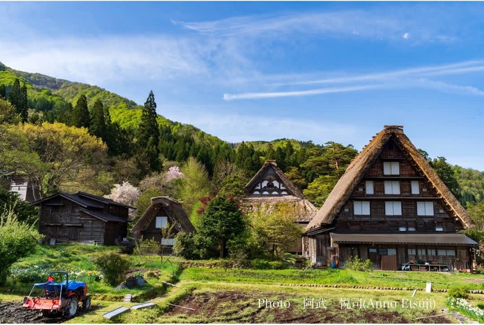 Di musim semi, wisatawan bisa menikmati indahnya bunga sakura dengan latar belakang pegunungan. Saat musim dingin, daerah ini merupakan salah satu tempat paling bersalju di dunia. Desa Ogimachi adalah tempat terbaik untuk menikmati suasana tenang dan merasakan cara hidup pedesaan Jepang yang sederhana namun harmonis.
