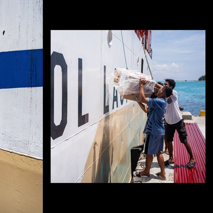 Untuk memasok bahan makanan, warga Miangas bergantung pada kedatangan kapal Sabuk Nusantara yang membawa bahan-bahan makanan. Hiskia Tommy Bororing, seorang fotografer yang juga tengah menjalani program yang sama dengan Yulianus mengabadikan momen Pasar Sehari dalam akun Instagram-nya.