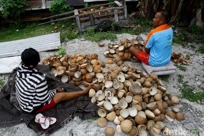 Mata pencaharian Orang Miangas yaitu sebagai nelayan. Selain itu, warga juga menjadi petani kopra. Kopra merupakan daging kelapa yang dikeringkan. Merangkum dari detikfinance, kopra merupakan bahan utama minyak kelapa. Kopra yang sudah keringkan akan dijual. Tak hanya mengolah daging kelapanya, cangkang kelapa juga dijual dan bisa dijadikan arang.