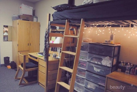 Foto: https://viral.dafunda.com/Berikutnya, kamu juga bisa membuat desain kamar kos sempit Kamu terlihat menyenangkan dengan mendesain furniturenya menjadi sejajar. Ya, kamu tinggal sejajarkan tempat tidur meja belajar dan juga lemari secara memanjang. Hal ini akan memberikan ruangan yang terlihat lebih ekstra di bagian sampingnya. Dengan begitu kamar kos kamu yang tadinya sempit akan terasa lebih lapang.