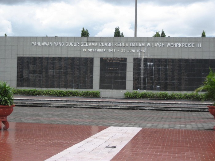Tepat pada bagian pintu masuk, kamu akan dibawa untuk mengenang 422 nama pahlawan yang gugur saat insiden Agresi Militer Belanda pada 19 Desember 1948 hingga 29 Juni 1949. Saat itu, Yogyakarta berubah menjadi daerah Wehrkreise III (Republik Indonesia Serikat).