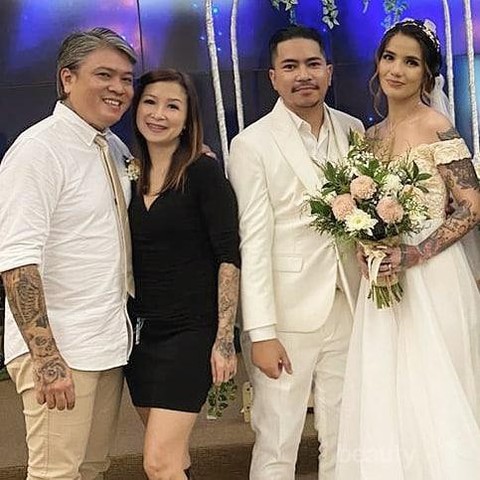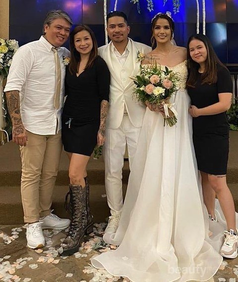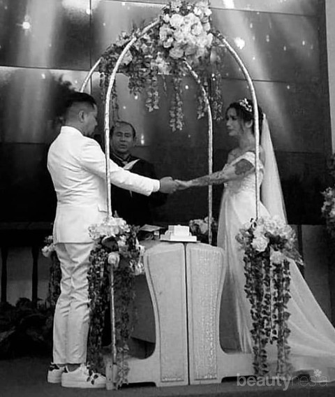 Di hari pernikahannya, Sheila Marcia memilih gaun pengantin warna putih dengan aksen emas di bagian dada. Busana serba putih yang dipakai Sheila Marcia dan Dimas Akira membuat keduanya nampak serasi ya, Beautynesian!