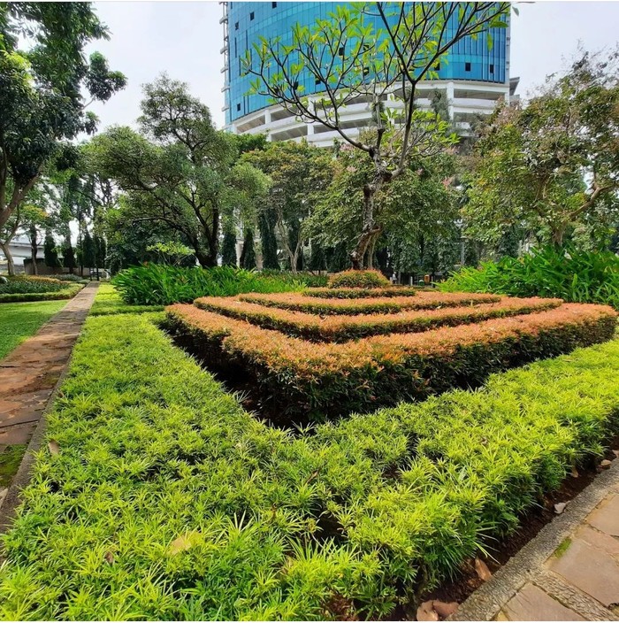 Di taman kota ini kamu akan menemukan aneka ragam tanaman hias, bunga-bungaan, dan pepohonan hijau yang tumbuh subur.