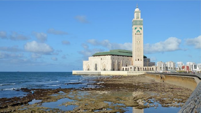Masjid Hassan II di Casablanca, Maroko, adalah salah satu masjid terbesar di dunia. Dibangun atas perintah Raja Hassan II pada tahun 1986, masjid ini diresmikan pada tahun 1993 setelah tujuh tahun pembangunan yang melibatkan lebih dari 10.000 pekerja. Keunikan masjid ini terletak pada lokasinya yang berada di tepi Samudra Atlantik, dengan sebagian bangunan menjorok ke laut.