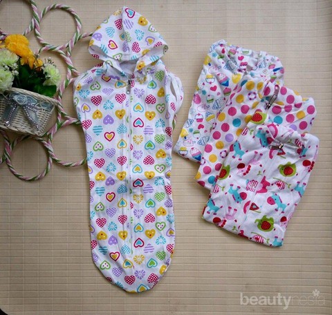 Selain perlengkapan mandi, bedong bayi juga sangat diperlukan lho. Seiring berjalannya waktu bedong bayi yang dahulu kita kenal berupa selembar kain halus, kini mengalami inovasi berupa bedong bayi instan yang bisa langsung dikenakan. Bedong bayi instan berbentuk seperti kepompong yang dilengkapi dengan resleting untuk memudahkan dalam pemakaian. Nah kamu dapat memilih satu diantara dua jenis bedong ini, Ladies.