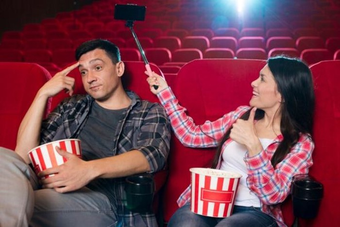 5. Berbincang dengan Suara Keras Saat Film Diputar
