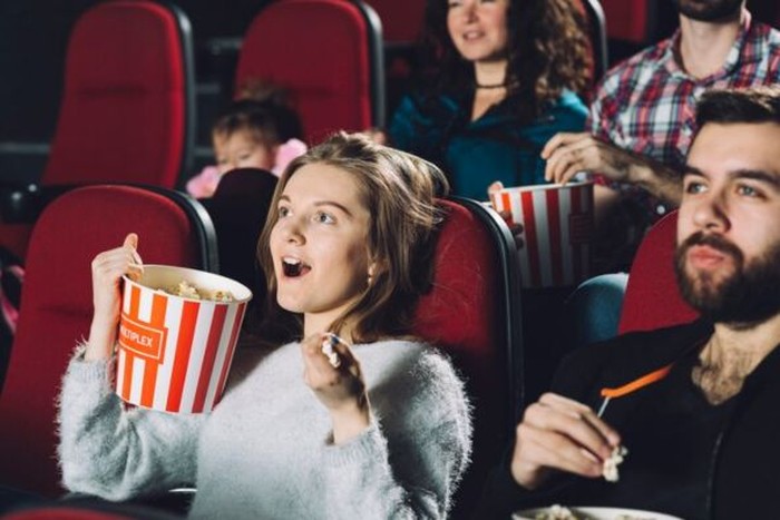 Ilustrasi penonton bioskop memakan popcorn /Foto: Freepik