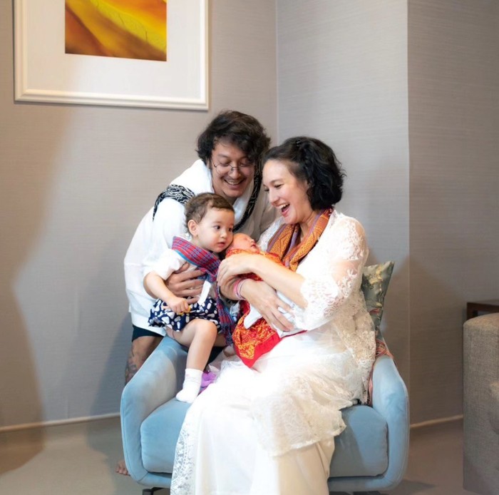Nadine mengunggah potret bahagia dirinya bersama Dimas Anggara, putri sulungnya, Djiwa, dan keluarga yang menemaninya di rumah sakit. Bahkan, Dimas juga ikut masuk ke ruang operasi demi menemani sang istri selama proses persalinan.