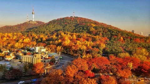 Tempat pertama yang bisa dikunjungi pada saat musim gugur di Korea Selatan adalah Namsan mountain. Pegunungan ini berada di utara Han River. Tempat ini juga mempunyai sejarah sebagai pusat perlindungan kota sebelum Hanyang dan Seoul.