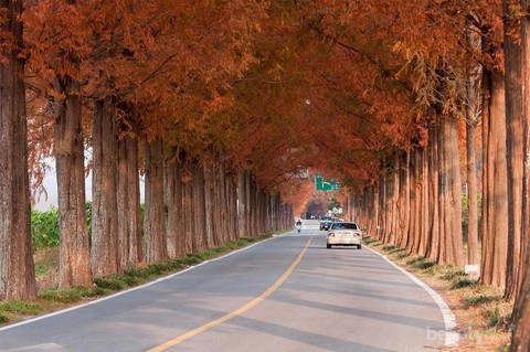Berikutnya yang tidak kalah indahnya ketika musim gugur adalah Damyang Metasequoia Road. Tempat ini merupakan satu jalan yang indah dan sering kali menjadi trending topic saat musim gugur tiba. Bagaimana tidak jalanan akan dipenuhi oleh dedaunan yang gugur dengan warna yang seragam berwarna jingga. Warna ini berhasil membuat romansa berkesan bagi siapa saja yang menikmati liburan di sana.