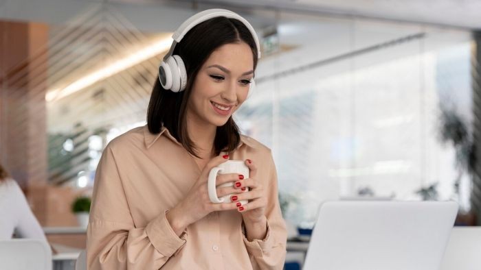 Ilustrasi Perempuan Bekerja dengan Mendengarkan Musik/Foto: Freepik.com