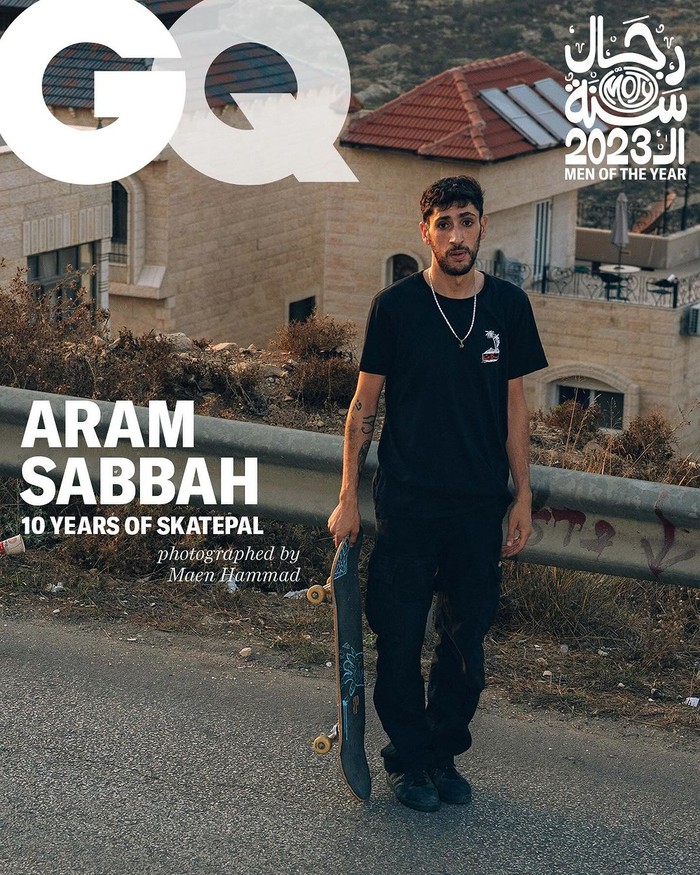 Aram Sabbah, manajer organisasi non-profit SkatePal, berada di urutan ke-5 Man of the Year 2023 versi Majalah GQ Middle East. Lelaki 25 tahun ini merupakan skater generasi pertama di Palestina.