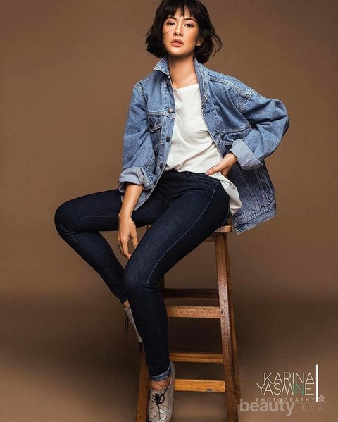 Dian Sastro tampil cool dalam balutan oversized denim jacket, skinny jeans dan oxford shoes. Nah, buat kamu yang suka bergaya simpel, style fashion seleb Indonesia satu ini bisa menjadi inspirasi loh!