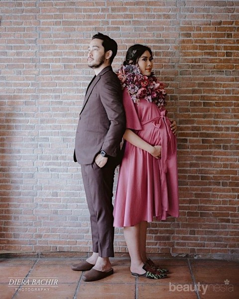Foto: https://www.instagram.com/syahnazs/Di foto ini, Syahnaz tampil dengan outfit dress pink yang manis. Kesan manis dan feminin semakin tampak dengan adanya aksesoris bunga yang dikalungkan pada leher Syahnaz. Jeje juga enggak mau kalah keren nih, Ladies. Dengan setelan jas berwarna cokelat, Jeje tampil gagah dan terlihat sangat siap menjadi seorang ayah.