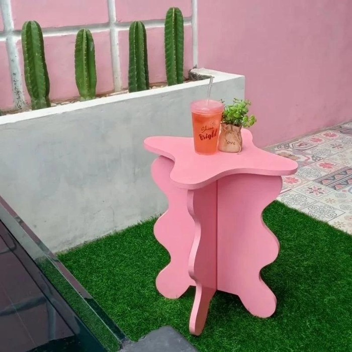 Selain tampilannya yang menawan, meja ini bisa di-custom warnanya tanpa tambahan biaya sehingga kamu bisa menyesuaikan dengan tema kamar, entah itu monokrom, pastel, atau warna-warna lembut yang sedang tren. Ukurannya hanya 50x40 cm sehingga ideal untuk digunakan sebagai meja kecil di sudut kamar, tempat pajangan lilin aromaterapi, buku, atau tanaman hias mini. Proses pembuatannya pun dilakukan dengan tangan oleh pengrajin ahli sehingga setiap produk punya sentuhan khas dan kualitas rapi.