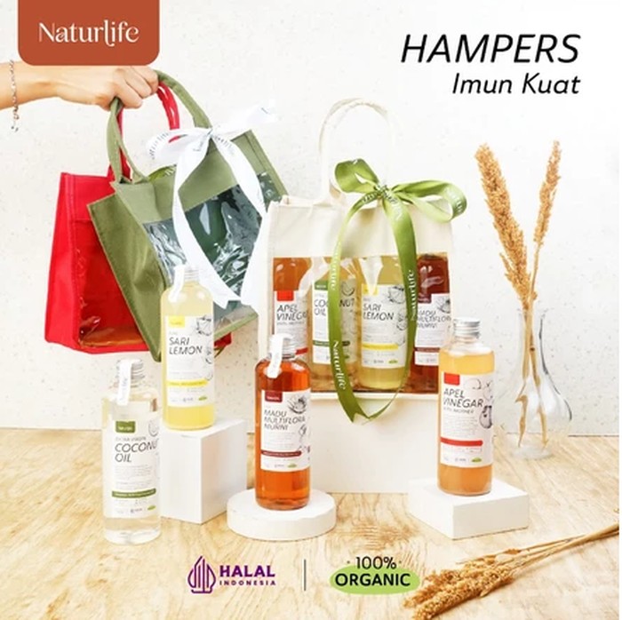 Ide hampers berikutnya adalah Naturelife Hampers Hidup Sehat yang dijual mulai dari harga Rp170 ribuan. Isinya berupa vitamin, suplemen, dan produk kesehatan lainnya yang bagus bagi kesehatan pencernaan dan imun.