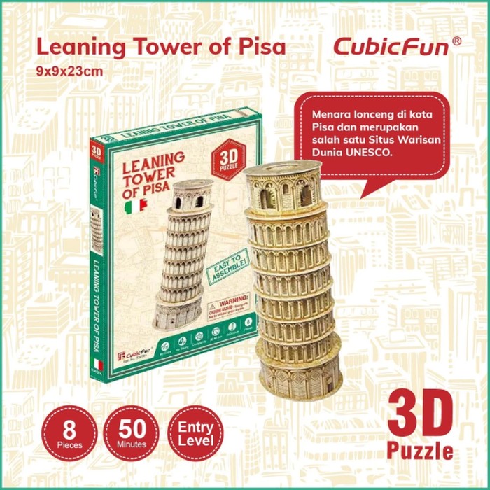 Siapa bilang puzzle cuma berbentuk 2 dimensi? Brand CubicFun merilis puzzle 3D yang cocok untuk melatih motorik anak-anak. Varian puzzle-nya beragam, salah satunya miniatur bangunan bersejarah di dunia seperti Menara Pisa.