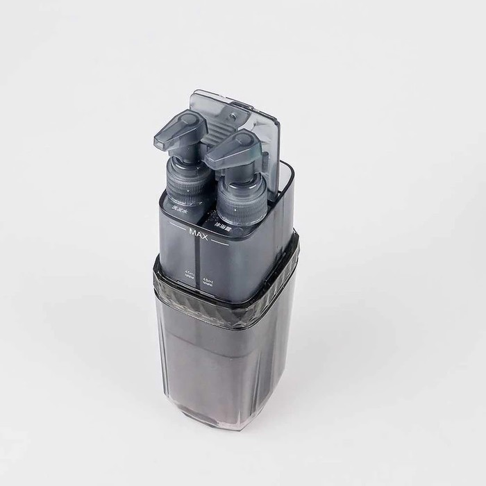 Ketika dibuka, tersedia 5 barang lain yang masing-masing memiliki fungsi. Tersaji dua kontainer dengan tutup berbentuk pump untuk menyimpan sabun dan shampoo. Lalu, bagian tengah kotak terdapat tempat sisir lipat yang mudah digunakan saat bepergian.