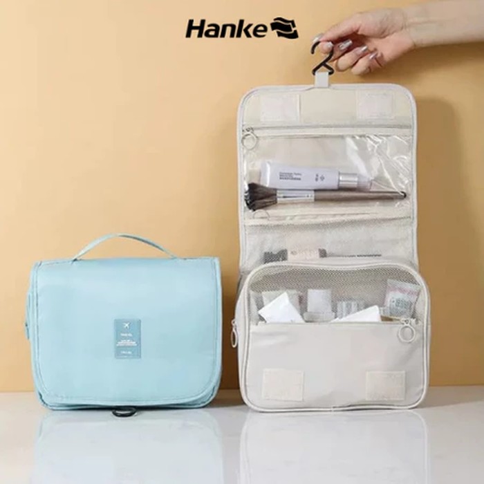 Bahannya pun dirancang dengan tahan air, jadi cocok untuk menyimpan keperluan mandi. Dilengkapi pula dengan pengait pada bagian luarnya, sehingga bisa digantung. Tersedia dengan 6 pilihan warna, mulai dari hitam, abu-abu, navy, pink, hingga biru cerah.