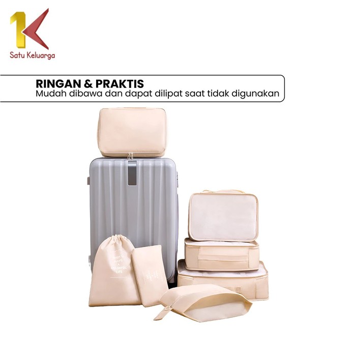 Barang travel kit satu ini cocok untuk kamu yang ingin koper lebih rapi saat bepergian. Tersedia 7 tempat penyimpanan yang dapat memuat beragam barang, mulai dari baju, celana, pakaian dalam, hingga sepatu.
