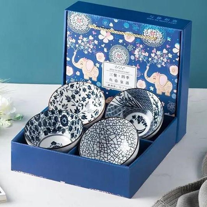 Yang lebih menarik, mangkok set ini sudah dibungkus dalam hampers yang rapi dan cantik. Jadi, kamu nggak perlu repot lagi mencari cara untuk membungkusnya.