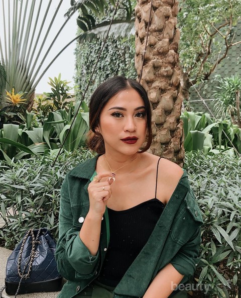 Untuk kamu yang senang tampil bead, kamu tentu akan suka gaya makeup bold ala Tyna Kanna ini. Dalam tampilan ini, Tyna menggunakan bold lip color dengan warna merah tua agak kecokelatan. Tyna menjadikan area bibir sebagai fokus utama dalam makeup-nya. Salah satu cara make up ketika ingin menggunakan bold color tetapi tetap tidak terlihat berlebihan adalah dengan menggunakan complexion yang natural. Namun, kamu tetap bisa menggunakan riasan mata yang juga tegas, kok! Seperti yang dilakukan Tyna dalam look ini, ia membuat a little wing liner sehingga make up wajah ini tetap terlihat tidak berlebihan.