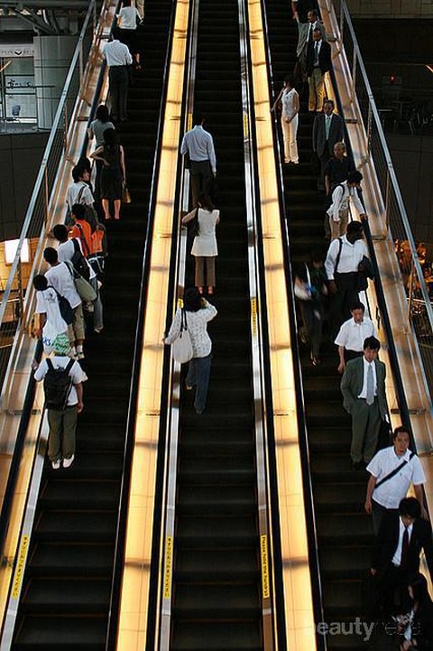 Di Indonesia, tidak ada peraturan untuk berdiri di sebelah mana pun saat naik eskalator. Berbeda dengan di Jepang, kamu harus berdiri pada posisi yang tepat untuk membedakan mana orang yang sedang terburu-buru dan mana yang sedang tidak terburu-buru. Apabila kamu berada di Tokyo, Yokohama, Kyoto, Hokkaido, atau Fukuoka, maka eskalator di jalur kiri bisa dipakai untuk orang tidak terburu-buru. Namun jika kamu berada di Osaka, Kobe, dan Sendai, jalur sebelah kanan lah yang diperuntukkan untuk orang yang tidak terburu-buru. Jadi, jangan sampai kamu salah dan dapat pandangan tidak menyenangkan dari masyarakat Jepang ya.