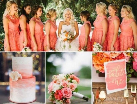 Tema warna pernikahan pada tahun 2019 tidak bermain dengan warna bold, melainkan warna living coral. Mulai dari dekorasi, bride maid dress, sampai bucket bunga akan didominasi warna ini. Pilihan bunga yang ditawarkan ialah aneka warna bunga seruni, aneka  warna bunga peony, mawar putih, bunga matahari dan baby breath. Pesta pernikahanmu pun akan tampak simple dan back to nature.