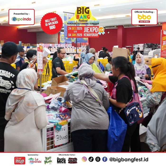 Big Bang Festival 2025, pameran cuci gudang terbesar di Indonesia. Diselenggarakan di JIExpo Kemayoran tanggal 24 Desember-4 Januari/Foto: instagram.com/bigbangfest.id