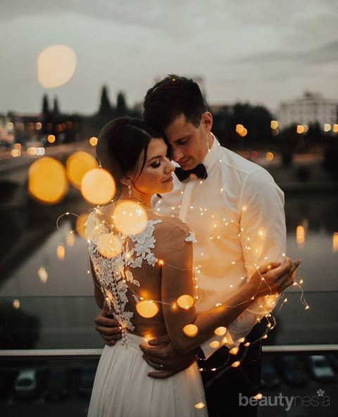 Foto wedding mu akan terlihat kekinian jika menambahkan lampu lampu tumblr cantik ini, selain lampu ini mudah di beli, harganya pun terjangkau. Kamu bisa mengambil foto romantis ini saat malam hari agar romantisnya lebih dapet dan pastinya hasil fotomu elegan banget ladies!